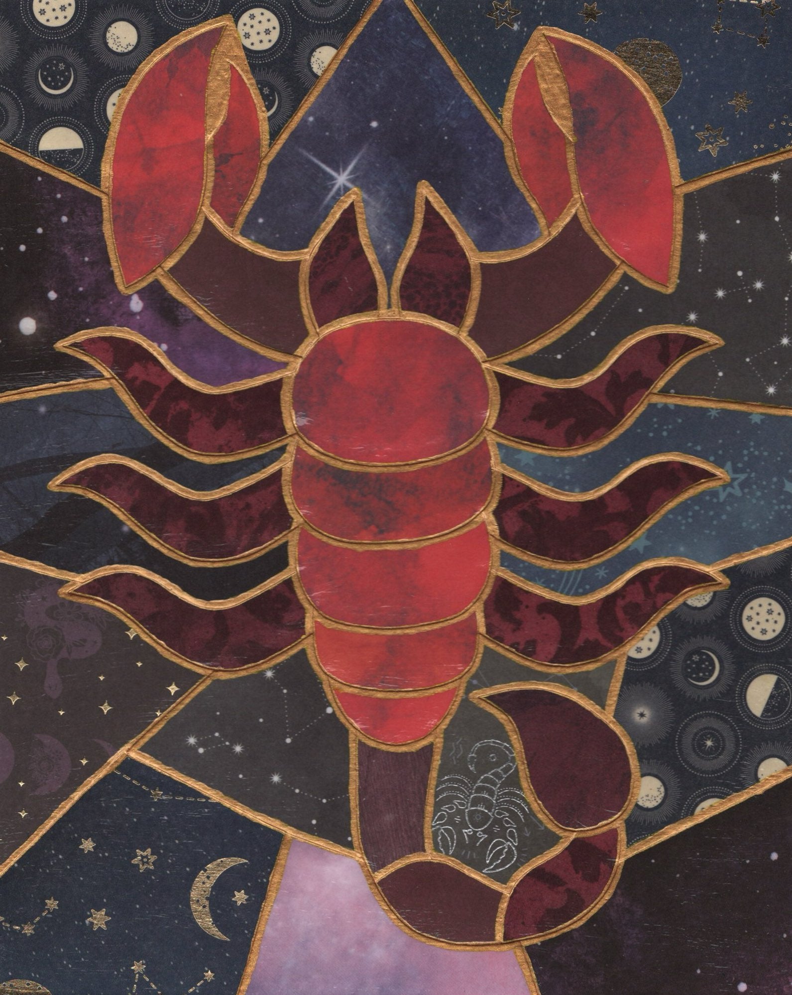 Embrace the intensity of Scorpio with this striking print featuring a detailed scorpion in deep, dark red hues on a stunning starry sky. A perfect representation of strength, passion, and mystery!